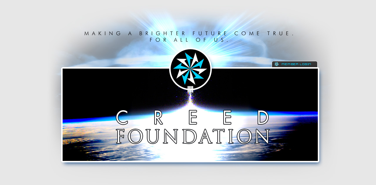 Dieser zielgerichtete Blick nach Vorne macht die Überzeugung jedes Mitglieds der Creed Foundation aus. Wir glauben fest daran, dass wir unsere Zukunft selbst bestimmen können, dass es in unserer eigenen Macht liegt, sie zu formen. Wir treten für eine gleiche Welt für alle ein und träumen von diesem Ideal. Dies mag bedeuten, dass globaler Luxus für alle nicht möglich ist, dass wir zurückkommen müssen auf das Erreichen des täglichen Überlebens des Einzelnen. Wir wollen, dass eine solche Welt bald Wirklichkeit wird. Dies treibt uns an.
